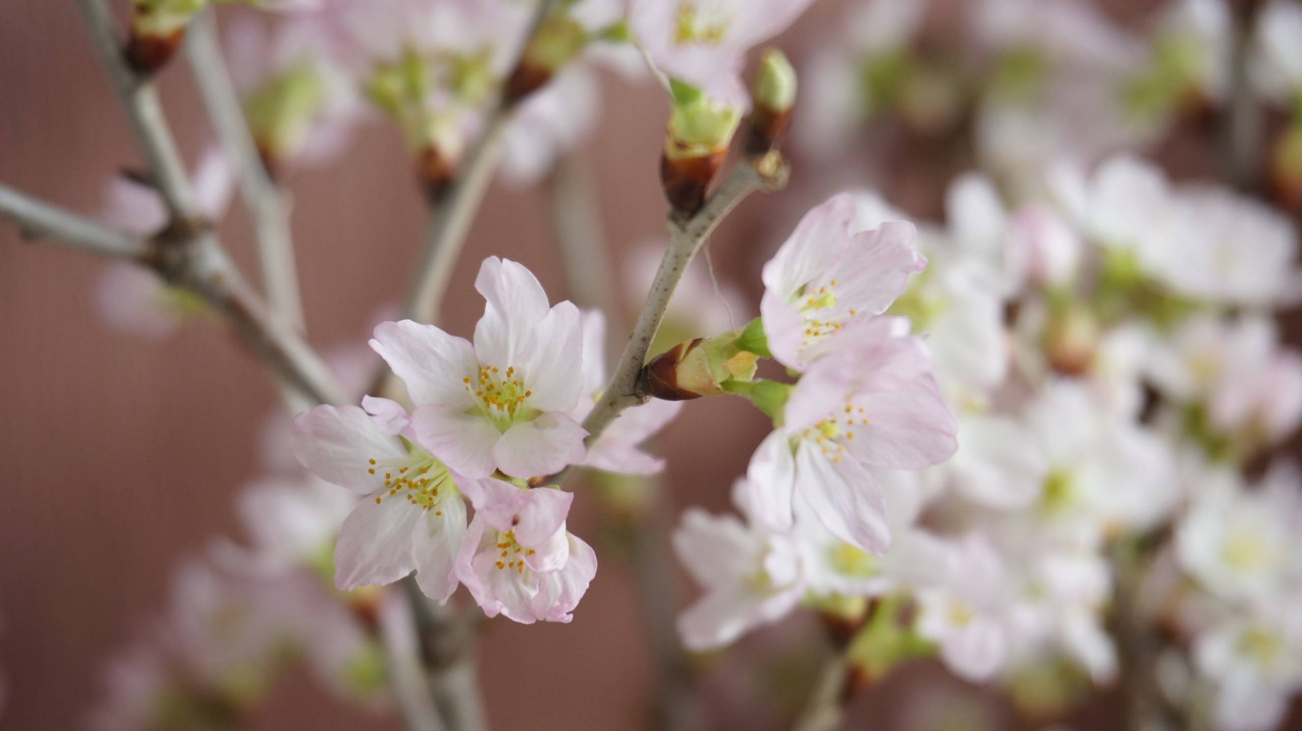 淡いピンクの小花と繊細な花びらが美しい啓翁桜。