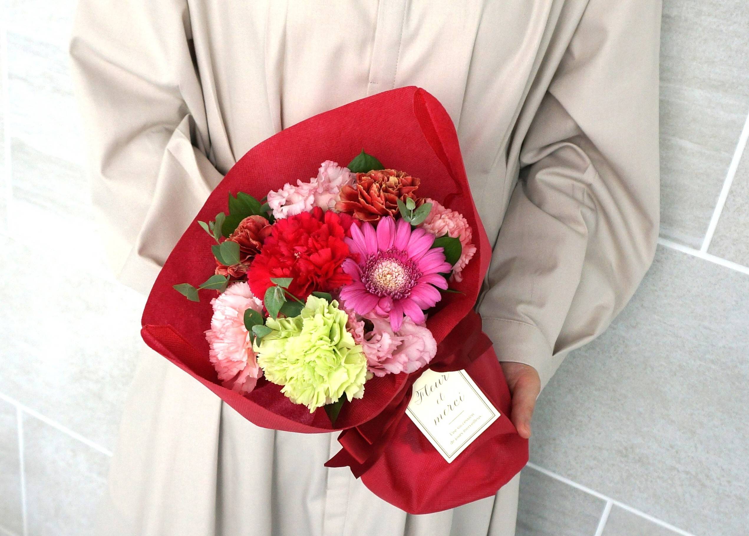 母の日の定番といえば、カーネーションと花束。