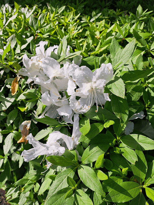 そっと寄り添うように咲く様子は、敷地の静かな一角に落ち着いた雰囲気をつくり出しています。